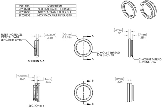 用于相機(jī)的 4mm 間距螺旋濾光片,透射率在 7% 到 0.5% 之間,具體取決于光譜范圍??梢远询B并與其他濾光片和分束器結(jié)合使用。Ophir 相機(jī)附帶兩個(gè)濾鏡