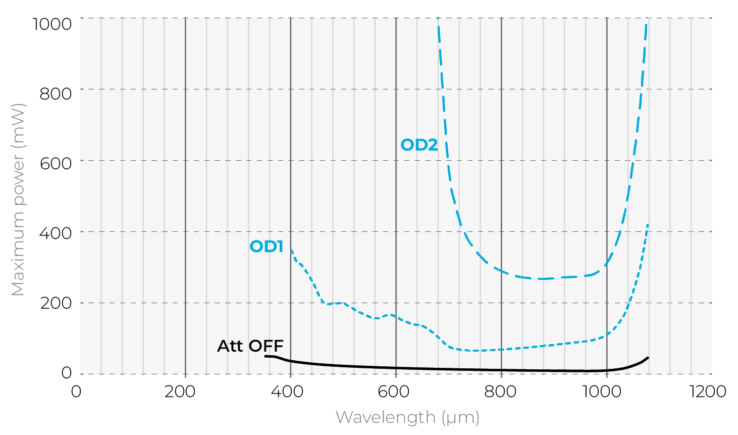 1. 1064 nm,附有衰減器。查看其他波長的最大功率曲線。 2. 980 nm。標稱值。實際值取決于環境電磁干擾和波長。 3. 附有衰減器。查看用戶手冊,了解不使用衰減器校準的不確定性。 4. 詳細信息請參閱用戶手冊。 |
