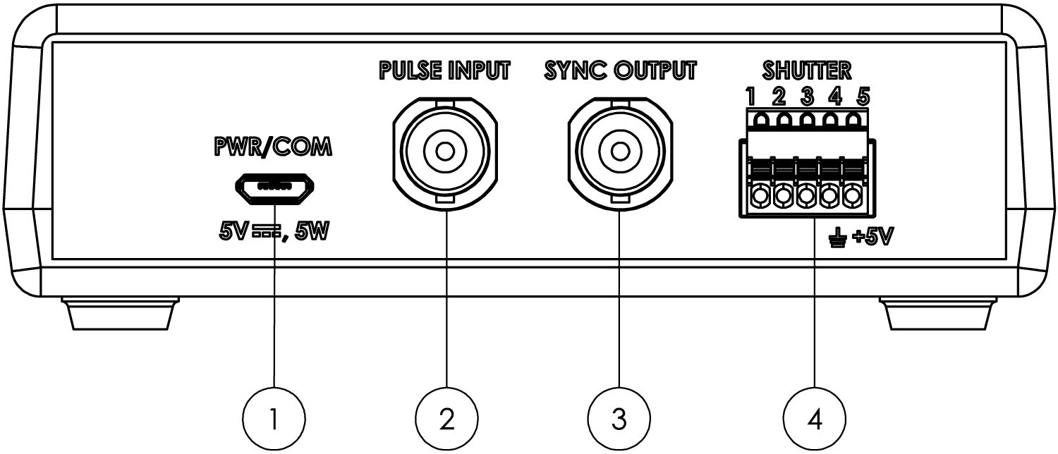 | 脈沖輸入 (BNC) | 輸入可用于通過 +5V TTL 信號控制快門 - 脈沖寬度決定曝光時間。 |