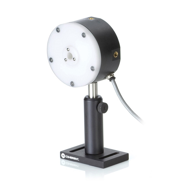 This PowerMax-RS PS10Q sensor is a thermally stabilized, amplified thermopile power sensor intended for measuring low power lasers down into the 100 μW range, making it ideal for measuring laser diodes, HeNe and ion lasers, and other low power laser sources. It includes a quartz window to more effectively eliminate thermal background radiation. Note that the window limits the spectral range to 0.3 to 2.1 μm.