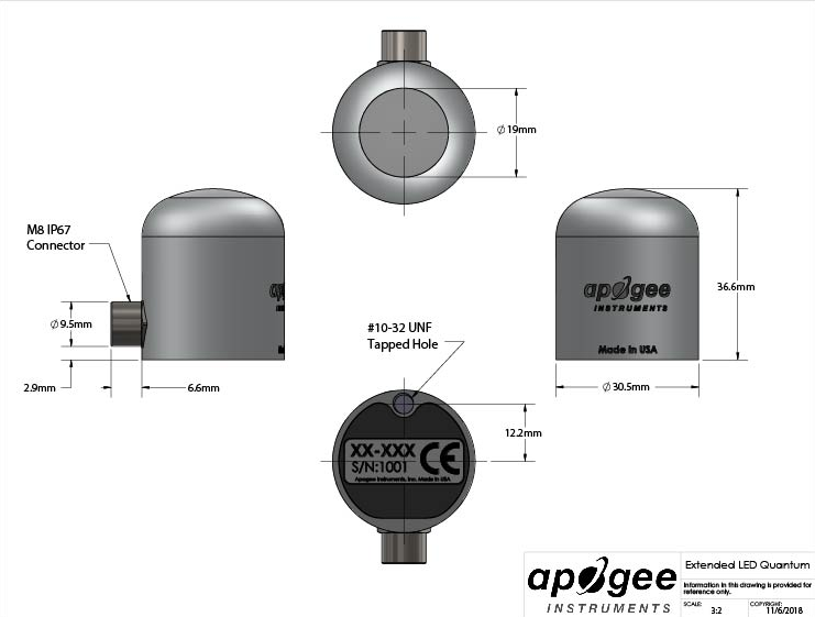 | Calibration Factor (Reciprocal of Sensitivty) | 1.6 μmol mˉ2 sˉ1 per mV |